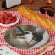 Plato De Papel Curioso Gatito Curioso Mirando, Feliz Fiesta