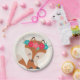 El zorro adorable con un oscuro rosa y verde azulado, estilo de moda boho, corona de cabeza y tiene los ojos cerrados de kawaii lindos con mejillas rosadas. El fondo es un bronceado claro con diminutos corazones de marfil. Perfecto para un fiesta chica de cumpleaños o una hermosa ducha de zorro de madera.