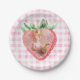 Plato De Papel Curte Strawberry Berry Photo Pink Gingham Brithday