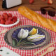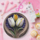 Plato De Papel Curvas elegantes: Tulipán blanco en diseño Art Nou