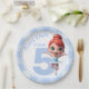 Celebrate your little star’s fifth birthday with this charming ballerina plate featuring a red-haired dancer in a blue leotard and white tutu. The bold number 5 and customizable name make it perfect for ballet-themed parties, dance recitals, or toddler celebrations. The blue and white checkered border adds a playful, classic touch to your table decor, making this keepsake plate a delightful addition to any girly gathering.