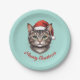 Plato De Papel Custom Cute Christmas Cat with Santa Hat