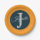 Plato De Papel Custom orange greay blue Monogram Elegant