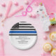 Celebrate a lifetime of courage, duty, and service with these Police Retirement Party Paper Plates, thoughtfully designed to honor the dedication of law enforcement professionals. Featuring the powerful and symbolic American Police Flag with the Thin Blue Line and a customizable message template, these plates are a striking and respectful addition to any police retirement celebration. Whether you're organizing a heartfelt send-off for a police officer, detective, sheriff, or any member of the law enforcement community, these retirement party plates help set the tone for a memorable and meaningful event. The bold police flag design represents strength, unity, and honor—qualities that define a career in public service. The editable message area allows you to personalize each plate with the retiree’s name, badge number, rank, or years of service, adding a unique and personal touch to the occasion. These plates are perfect as retirement cake plates and retirement dessert plates, great for serving cake, appetizers, and party snacks while enhancing your overall police retirement party décor. Ideal for both formal banquets and casual gatherings, these happy retirement plates offer a patriotic and professional design that resonates with guests and celebrates the retiree’s legacy. The Thin Blue Line motif underscores the values of bravery and sacrifice, making these plates especially meaningful for fellow officers, friends, and family in attendance. As part of your complete police retirement party supplies, these law enforcement-themed paper plates pair seamlessly with coordinating items like napkins, cups, and banners. Their high-quality disposable design ensures convenience without compromising on visual impact, making them a practical and stylish choice. Whether for a small ceremony or a large farewell event, these police retirement paper plates honor a career spent protecting others with pride and dignity. Perfect for police officer retirement parties, law enforcement retirement events, and any cop or sheriff’s farewell celebration, these plates add a bold and respectful touch to the table, turning every bite into a tribute to service and commitment.