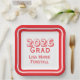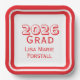 Design features your text in bright red and displayed against a white background. A bright red border frames design. All text is customizable. Available in a variety of colors.