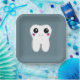 Placas de papel con un dibujo de un gran diente blanco con una sonrisa kawaii linda y grandes ojos felices.