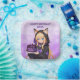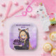 Cute personalized birthday paper plates for a girl's birthday party. A sweet anime girl in a fox ears hoodie holding a purple and black birthday cake.
