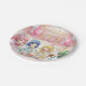 Pretty pink and green anime girl's birthday ice cream party personalized paper plates! Adorable girls sitting around a table eating ice and pretty pastel colors.