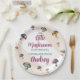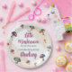 ¡Nuestro pequeño hongo está en camino! Hongos brillantes y coloridos, placas de papel para bebé, con un elegante tipo de letra de guión.