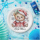Plato De Papel Cute Christmas Bear and Snowflakes