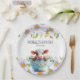 Cuidados platos de papel para fiestas de cumpleaños de fiestas de cumpleaños con una adorable vaca mirando desde la parte superior de una taza de té cubierta de margarita. Personalizado con el nombre de la invitada de honor y su fecha fiesta. Contáctame para obtener ayuda con tus personalizaciones o para solicitar productos adicionales de correspondencias o coordinación de Zazzle para tu celebración.