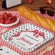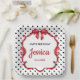 Elegant red bow and ribbon with polka dot background, birthday paper plate, change the text to anything you want when ordering