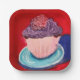 Make your dessert table extra sweet with these vibrant cupcake-themed paper plates featuring an original oil pastel design. The bold red background, soft pink cupcake liner, and rich purple frosting create a playful and eye-catching look that instantly brightens any celebration.