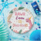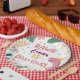 Celebra tu día especial con este adorable plato personalizado que incluye un juguetón dinosaurio rosa que lleva un gorra fiesta, rodeado de confetti colorido y acentos frondosos. Perfecto para una fiesta de cumpleaños temática "Dino-Cuatro", este diseño es un personalizable con el nombre del niño, añadiendo un toque divertido y único a la celebración. Duradero y vibrante, es a la vez un placer práctico y una deliciosa adición a cualquier decoración fiesta con temática de dino.