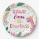 Plato De Papel Cute Dino-Cuatro Chicas de dinosaurios rosados