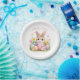 Cute bunny rabbit with pink blush peony flowers watercolor party paper plate. Perfect for easter.