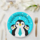 Plato De Papel Cute Feliz Cumpleaños Pingüinos Cuellos Azules
