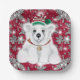 Plato De Papel Cute festive holiday Polar bear glitter snowflakes