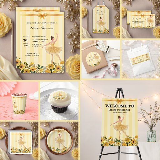 Cute Floral Yellow Ballerina Ribbon Baby ShowerDiseñado por Elixir Torres