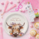 Trae un toque de encanto adorable a tu ducha de bebé con nuestras Cute Highland Cow Paper Plates. Perfecto para servir tentempiés y golosinas, estos platos presentan un caprichoso diseño de vaca Highland que le da un toque rústico y encantador a su celebración. Cada plato exhibe una entrañable vaca de la región con su característico pelo reluciente y su dulce expresión amistosa. El diseño se complementa con tonos pastel suaves y con encantadores acentos que hacen de estos platos una deliciosa adición al entorno de su mesita de ducha para bebés.