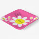 Plato De Papel Cute Hot Pink and White Floral 5º cumpleaños