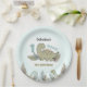 Plato De Papel Cute Personalizado Dinosaur Blue Green Boy Primer