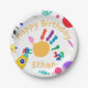 Este diseño de placas de papel fiesta, adorable y colorido, presenta una colección de colores, con una colorida huella a mano, ABC, 123 con feliz cumpleaños y nombre más fondo. Estas placas se pueden personalizar con el nombre de cualquier niño. Esta impresionante pintura con el dedo ABC, 123 materiales de fiesta temáticos es una excelente incorporación a cualquier fiesta de cumpleaños para niños de todas las edades.