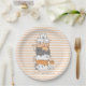 NewParkLane - Cute Birthday Paper Plates para niños o amantes de gatos, con un dulce montón de gatos, contra un suave fondo rayado de naranja, y una plantilla de texto con un feliz deseo de cumpleaños. Fácil de personalizar con su propio texto para un diseño personalizado. Todos los estilos de texto, colores, tamaños se pueden modificar para adaptarlos a sus necesidades.