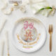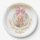Add the perfect finishing touch to your winter baby shower favors with these adorable party paper plat . The design features a cute watercolor gingerbread girl nestled inside a glass Christmas bauble, topped with a pink bow and festive faux gold glitter dust.