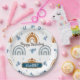 Plato De Papel Cute Retro Boho Patrón Celeste Cumpleaños