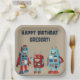 Plato De Papel Cute Retro Robots Sci-Fi Boys Cumpleaños