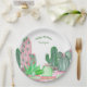 Plato De Papel Cute rosa y verde acuarela Cactus Birday Pap
