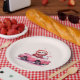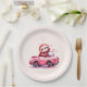 Paper plates with an adorable illustration. A happy looking sloth sitting in a sporty pink convertible. Waving as he drives by. With hearts floating upwards.