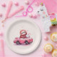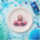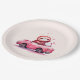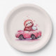 Plato De Papel Cute Sloth Driving a Pink Convertible
