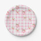 Plato De Papel Cute Strawberry Berry Pink Gingham Brithday