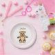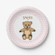 Plato De Papel Cute Teddy con puntos blancos en cumpleaños rosado