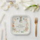 Make Emma's baby shower extra enchanting with these adorable personalized paper plates! A sweet watercolor wreath frames a classic bunny at the center, joined by playful mice with hearts, a cuddly teddy bear, clever fox, prickly hedgehog, another bunny, and a wise owl perched among soft florals, leaves, berries, butterflies, and tiny hearts—all on a timeless light green gingham backdrop. Ideal for serving cake, snacks, or adding charm to your rustic forest, spring, or gender-neutral celebration. Charming, vintage-inspired, and fully customizable for a memorable party!