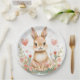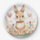 Plato De Papel Cute Woodland Rabbit Pink Hearts Pastel Flowers