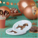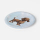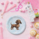 Placas de papel con un perro de Dachshund de fondo azul. Estas placas de papel son perfectas para fiestas y eventos con temática de perro o para cualquiera que solo ame a Dachshunds.