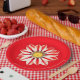 Plato De Papel Daisy africano / Gazania - franja roja y blanca
