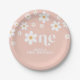 ¡Uno! Platos de fiesta de 1 cumpleaños inspirados en el retro, con daisies de estilo de los años 70 y fuentes y colores boho.