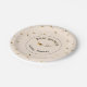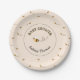 Añada el nombre de la madre a un plato de papel personalizado para una ducha de bebé con abejas melíferas flotando entre flores de margarita blancas y amarillas sobre un blanco almendro neutro.