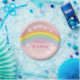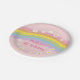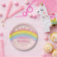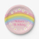 Estos bonitos platos de papel de cumpleaños incluyen margaritas dibujadas a mano y un arcoiris en colores pastel.