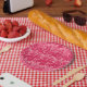 Plato De Papel Damasco de flores jacobeas, fucsia y rosa claro