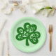 Conjunto de ocho placas de papel de 9" con una imagen de un caprichoso trébol damasco sobre verde claro. Vea el frasco de caramelo, taza de espresso, matraz, jarra, jarra, vidrio de disparo, tetera y tiras acuáticas. Vea toda la colección de platillos del Día de San Patricio en el FOOD/BEV | Sección de platos.