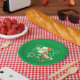 Estos son adorables platos de papel para el Día de San Patricio o para cualquier celebración irlandesa. Cuentan con un leprechaun en verde y un naranja que está bailando una jig. A su lado hay una bandera verde, blanca y naranja con el texto IRISH cruzando ella. Las rocas de champú verdes dispersas completan la imagen, que se sitúa sobre un fondo verde y brillante. ¡Festividad y colorido! Asegúrese de ver las servilletas de papel que coinciden en nuestra tienda. *La imagen prediseñada utilizada en este diseño está protegida por derechos de autor por Encore Software, Inc., que permite su uso a sus licenciantes. Todos Los Derechos Reservados.