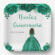 Plato De Papel Dark Skin Princess Green Floral Quinceanera