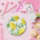 Ponga una mesa festiva con este plato de papel con estampado de limón. Este plato presenta una ilustración de acuarela de limones, hojas verdes y flores blancas. Utilice este plato para la temporada de primavera y verano para sus necesidades de ocasión o para uso diario.