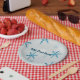 Este diseño de Navidad también puede hacer una declaración con personalización, un gran punto de conversación de boda. ¿O tal vez estos platos de papel podrían comprarse para una fiesta de Navidad?
