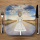 Platos de papel de Despedida de Soltera de Señorita a Señora con novia mirando hacia un camino abierto. Personalízalo con los detalles de tu evento.